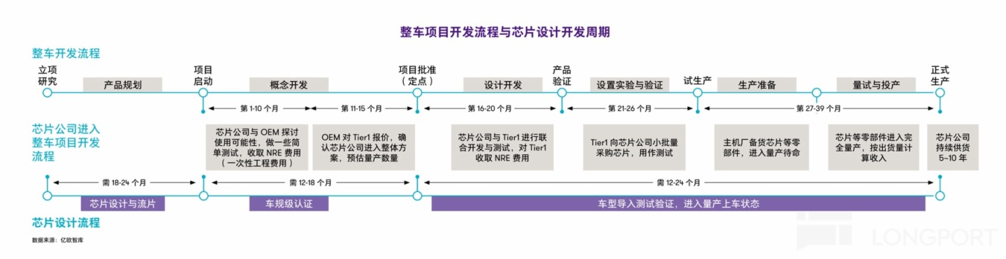 智驾芯片从项目启动到量产上车需 3.5-5 年,需经历芯片设计、流片、车规级认证、导入测试验证、量产等多个环节。小鹏、蔚来自研耗时近 5 年,理想 2022 年启动自研后遭遇流片失败,预计 2026 年量产,耗时 4 年。