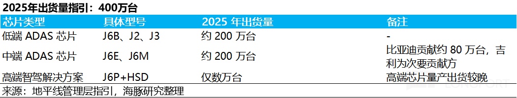 目前 J6P 单价最高(J6E 到 J6P,单价拉高了接近 8 倍),25 年上半年才只有订单还没有出货,下半年才开始小批量出货,这款产品也是地平线短期高估的核心原因。