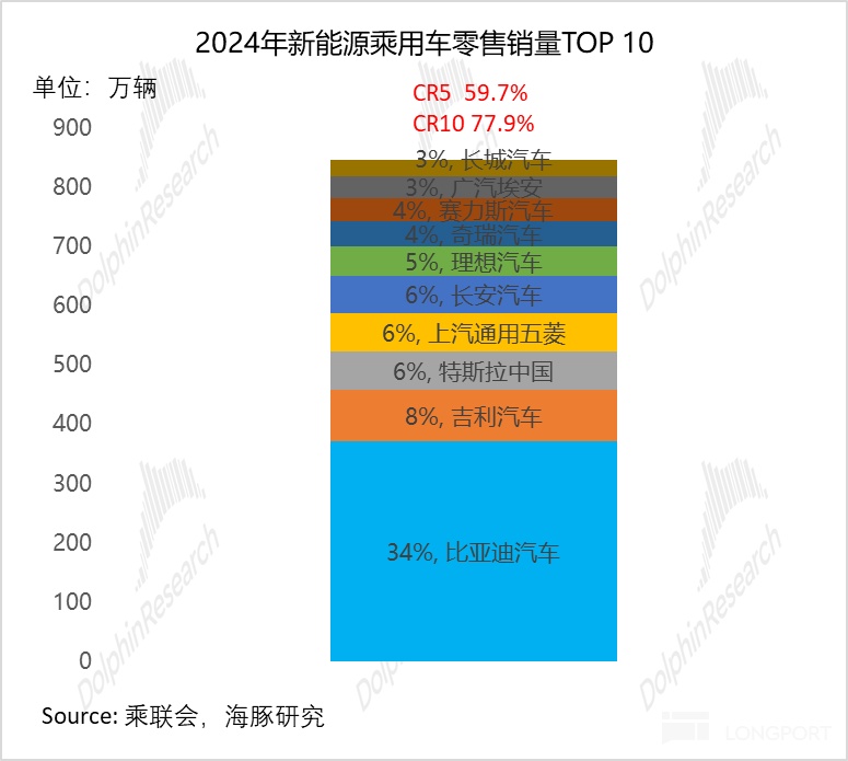 2024 年中国前五大乘用车企市占率 43%,新能源领域前五大市占率已达 60%(油电转换带来标准化提升、竞争门槛降低,头部效应更显著)。海豚君预测,2030 年中国新能源汽车渗透率将升至 90%,智驾功能普及将进一步推高市场集中度,届时前五大乘用车企市占率有望升至 60%。