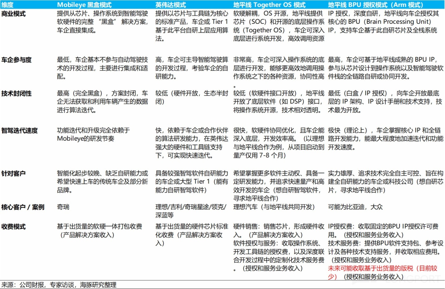 c. Together OS 模式:提供芯片和开源底层车载操作系统,与车企或 Tier 1 合作伙伴共同进行上层智能驾驶软件系统的开发。