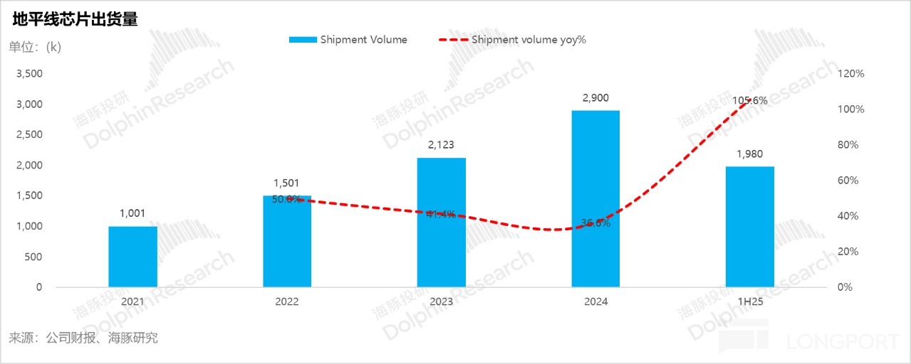1H25 地平线芯片总出货量约 198 万套,同比增长 106%;其中支持中高阶智能驾驶的芯片(80+Tops 以上就算)出货约 100 万套,占比达到 50%,同比增长 584%。
