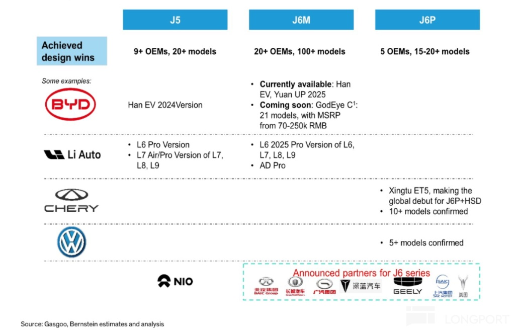 基于纳什架构的 J6 系列芯片(1H25 收入占比接近 50%),因拉高算力(主要是高性能版的 J6P),算是终于有了进入英伟达车芯地盘的资本。