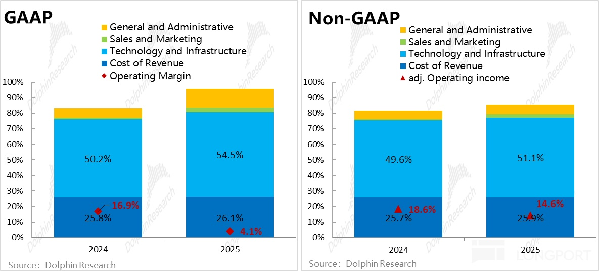 公司把創收成本定義為數據中心建築和能源相關成本;科技&基建費用(T&I)主要是各類軟硬件設備産生的折舊成本,還包括傳統研發、軟件訂閱費等費用。