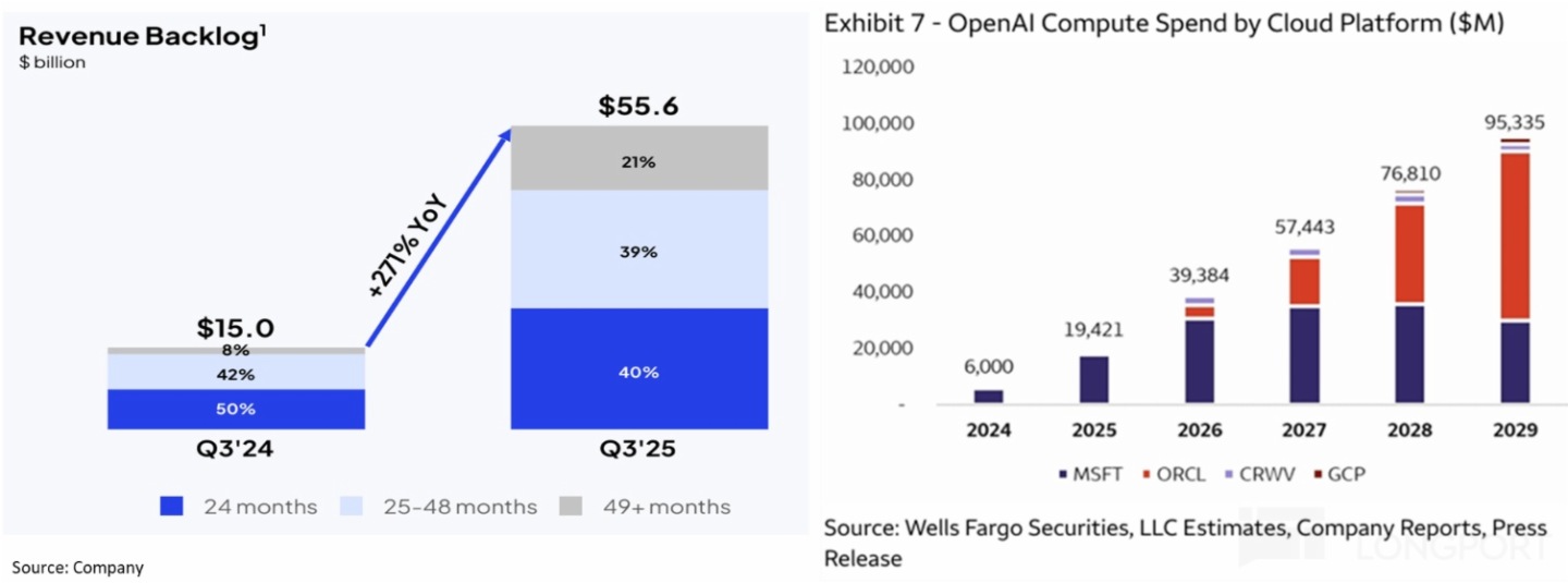 根據在今年三季度財報,公司已簽訂合計 2.9Gw 的電力供應,同期上綫 0.59Gw 算力,意味著在沒有新增供應的情況下也能滿足公司再增加近 4x 的算力供給,對應年化收入近$270 億。對應公司當前約 550 億的未履約餘額,目前已鎖定的電力供給已足夠未來好幾年的發展。