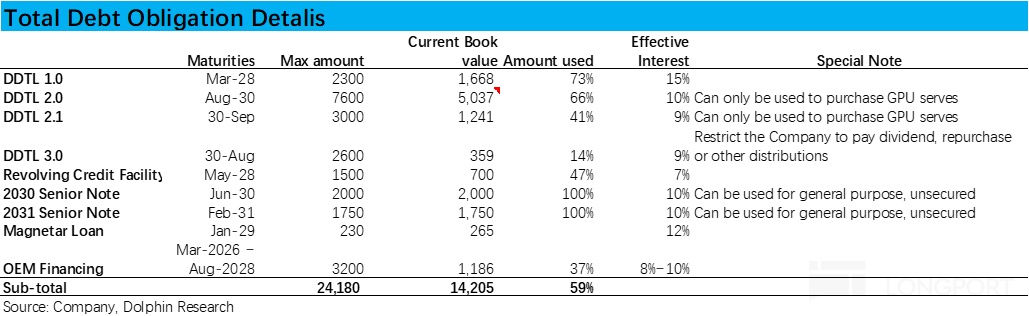 b. 當前各項負債的實際利率普遍都在 10% 上下,相比巨頭公司甚至低於美國國債的融資利率,CoreWeave 這類 「小公司」 融資成本肉眼可見的高。