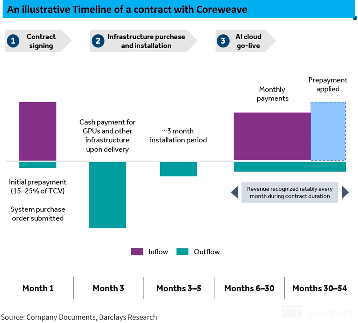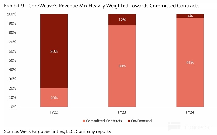 對應著公司高度依賴少數大客戶的長期風險,短期視角反而是 CoreWeave 很強的確定性。