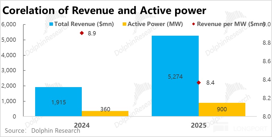 供給上,按近 2 年的情況,每 1 Mw 的上綫算力對應産生約$850 萬的年收入,那麼200 億收入對應的上綫算力約為 2.4GW,小於公司目前已儲備的約 2.9GW 能源供應,也不會存在能源瓶頸。