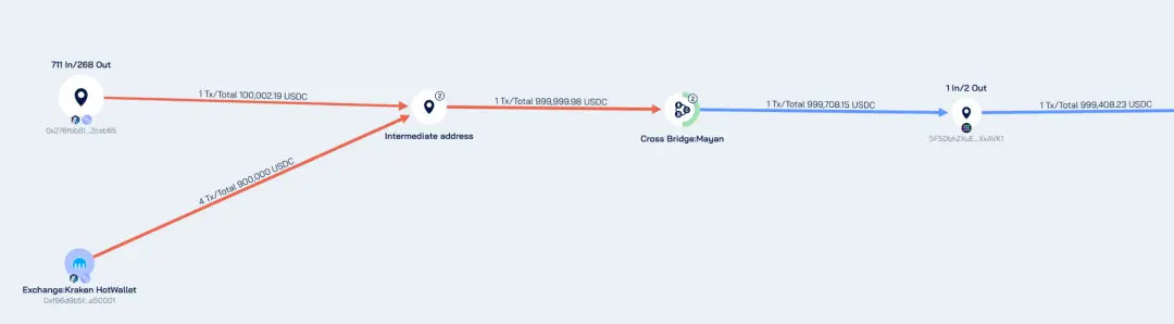 對上述的跨鏈資金進行進一步的追蹤可以發現,該資金來源於Arbitrum地址0xBc985b167C5F3801B19E2Dec7082c2fcbBF07e91,繼續往前追溯發現這筆資金90%提取自Kraken,10%來自一個未知的多鏈活躍交易地址0x276fbb81c8a7567ad2412469a549bd4dc82cab65。