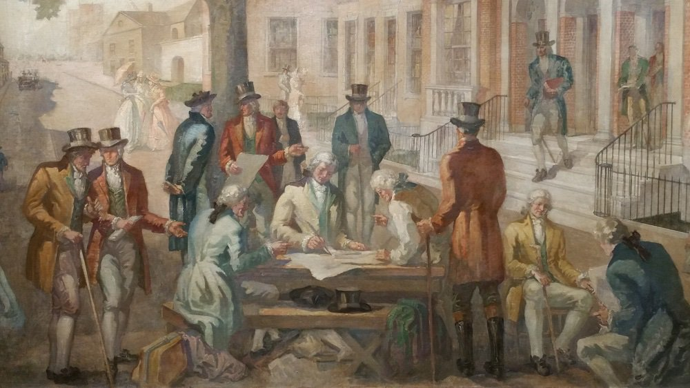 那時,有24 位股票經紀人聚集在紐約華爾街一棵梧桐樹下,並簽署了《Buttonwood Agreement》。