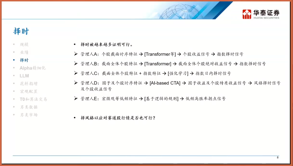 曾經的頭部玩家格局被打破,博道、國金等機構憑借極其靈活的策略異軍突起。在何博士的調研中這些業績領跑的公募量化,本質上是“披著公募外衣的私募”。它們擁有極高的換手率,策略叠代速度驚人,甚至在日内回轉(T+0)的使用上不輸頂級私募。