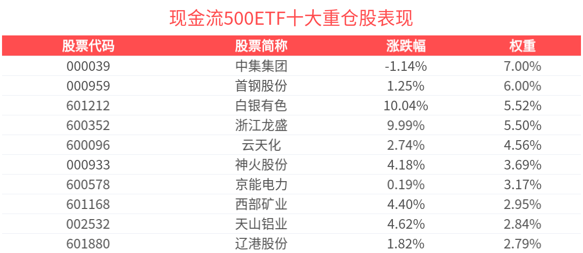 现金流500ETF(560120)紧密跟踪中证500自由现金流指数,中证500自由现金流指数从中证500指数样本中选取50只自由现金流率较高的上市公司证券作为指数样本,以反映中证500指数样本中现金流创造能力较强的上市公司证券的整体表现。数据显示,截至2025年12月31日,中证500自由现金流指数前十大权重股分别为中集集团、首钢股份、白银有色、浙江龙盛、云天化、神火股份、京能电力、西部矿业、天山铝业、辽港股份,前十大权重股合计占比44.11%。