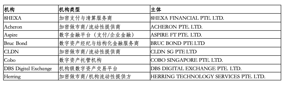 截至目前,MAS 尚未公開 DTSP 牌照的完整持牌名單,相關情況主要通過監管文件及政策說明予以體現。