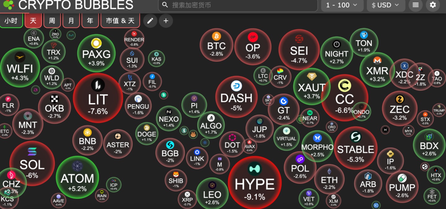 今日市值前100幣種最大漲幅:Cosmos 漲 5.2%、World Liberty Financial 漲 4.3%、PAX Gold 漲 3.9%、Tether Gold 漲 3.7%、Monero 漲 3.2%
