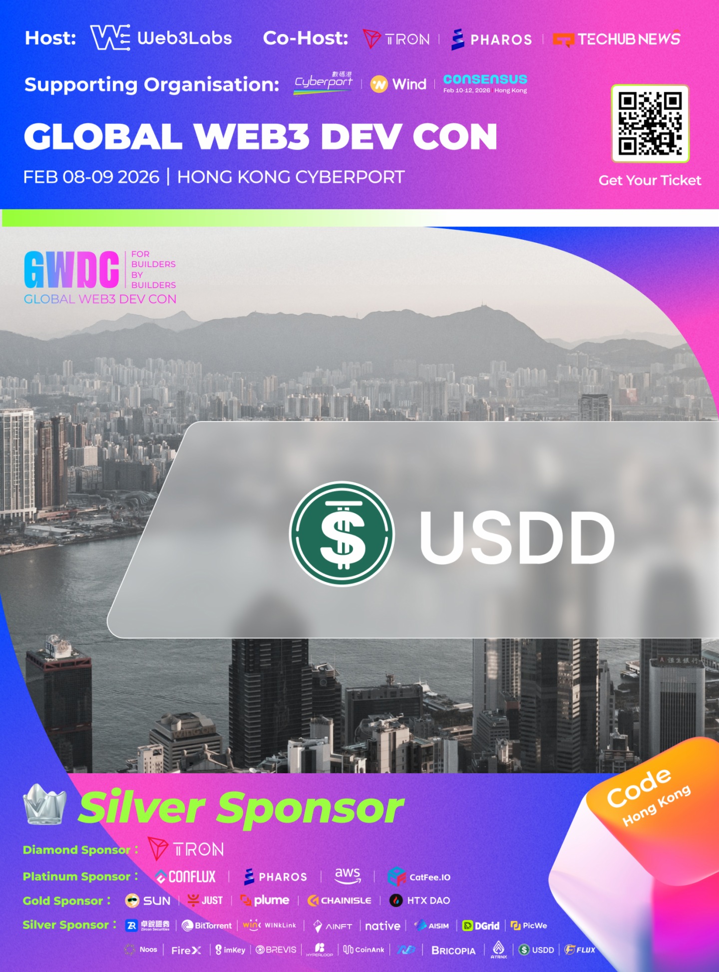 Techub News 消息,USDD 成為「全球 Web3 開發者大會 2026」白銀級贊助商。USDD 是一款與美元 1:1 錨定的去中心化超額抵押穩定幣,具備 安全、透明、穩定 的優勢。升級後的 USDD 2.0 採用動態抵押與先進風險管理體係,實現超額抵押並由社區主導治理,打造透明可審計的係統,確保用戶完全掌控資産。其生態同時集成 DeFi 功能,引入高效清算、抵押品拍賣與穩定幣兌換工具(PSM),以維持市場穩定並推動長期發展。     本次大會由 Web3 Labs 主辦、Techub News 聯合主辦,並被定位為 Consensus Hong Kong 2026 期間的官方最大邊會之一。借助香港「一國兩制」制度優勢與數碼港 Web3 基地定位,大會致力孵化亞洲下一個區塊鏈爆款項目。   立即報名:https://luma.com/spz5c884   官網:www.gwdc.net
