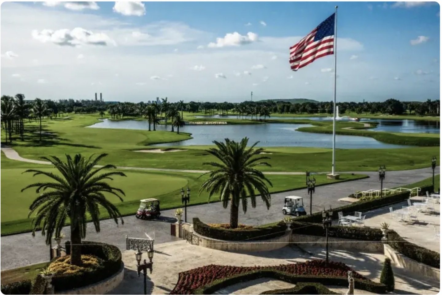 顯然,特朗普被這尊雕像打動了。上個月,Cottrill 遠赴佛羅裡達州,在特朗普多拉高爾夫綜合度假區為那座 7000 磅的基座完成了安裝。Stockton 在社交平台上吹噓,這是一塊「寶地」。Burns 今年 1 月在給合作者的短信中稱,白宮日程安排人員目前正「積極敲定」總統出席雕像官方揭幕儀式的日期。