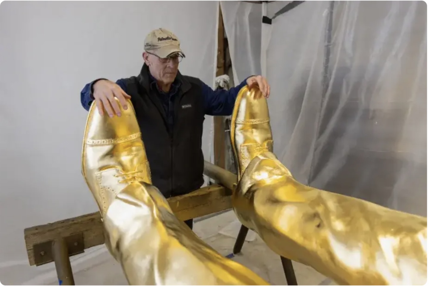 特朗普的心願最終成真。Sansalone 向團隊透露,他咨詢了紐約一家曾為特朗普大廈提供裝飾的金箔供應商。Cottrill 也分享了雕像的最新成品照。