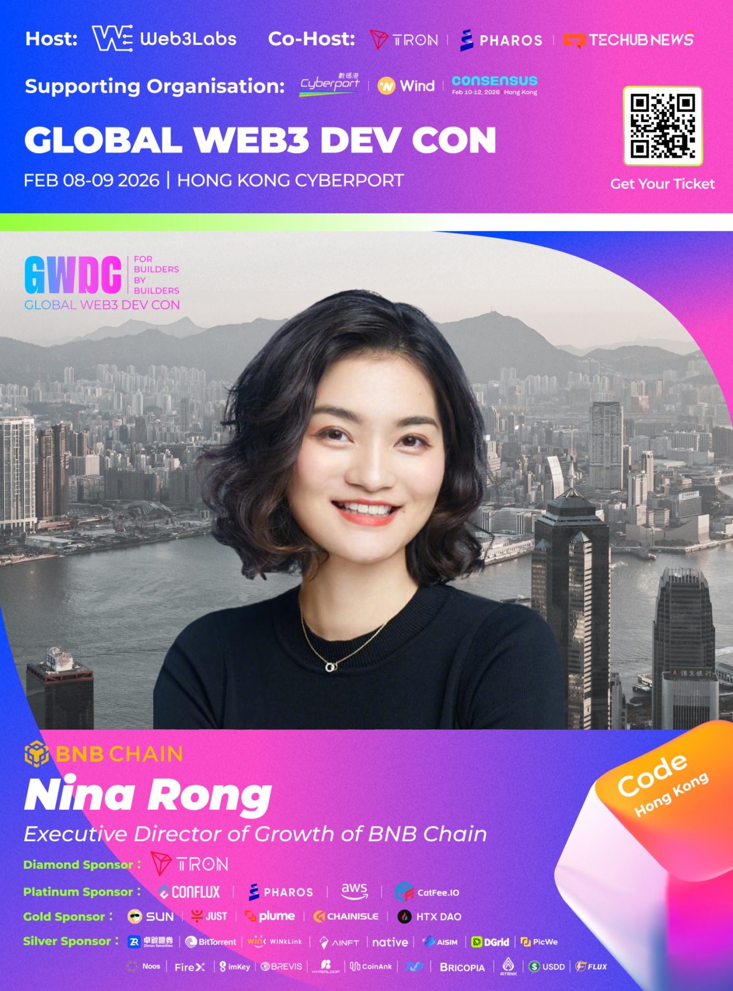 本次大會由 Web3Labs 主辦,TRON、Pharos Network、Techub News 聯合主辦,並被定位為 Consensus Hong Kong 2026 期間的官方最大邊會之一。活動時間為 2 月 8 至 9 日,地點為香港數碼港。
