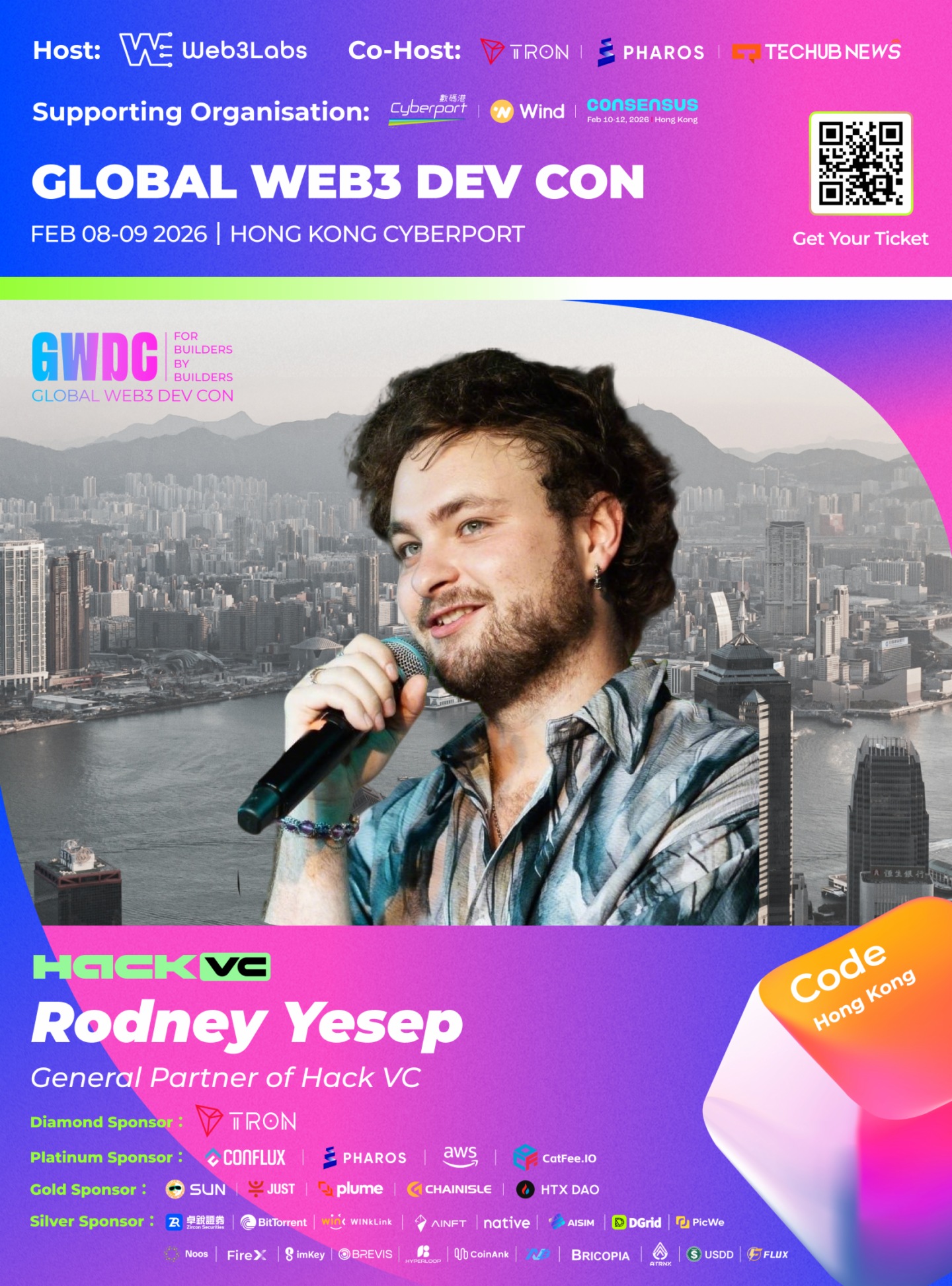 本次大會由 Web3Labs 主辦、Tron、Pharos 及 Techub News 聯合主辦,並被定位為 Consensus Hong Kong 2026 期間的官方最大邊會之一。借助香港「一國兩制」制度優勢與數碼港 Web3 基地定位,大會致力孵化亞洲下一個區塊鏈爆款項目。   立即報名:https://luma.com/spz5c884 官網:www.gwdc.net