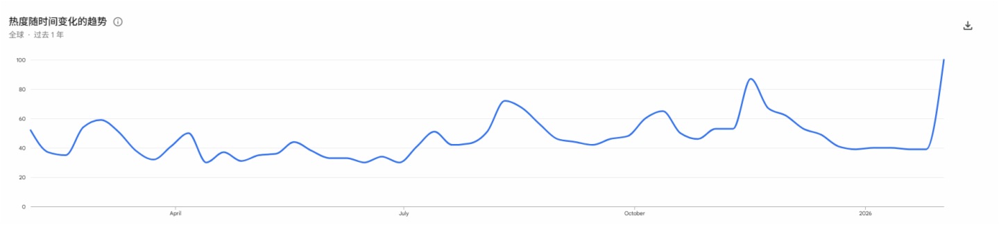 谷歌趨勢的初步數據顯示,從 2 月 1 日開始的一周内,全球“Bitcoin”的搜索量達到 100,創下過去 12 個月以來的最高水平。此前的最高點出現在 11 月 16 日至 23 日這一周,當時比特幣近六個月來首次跌破 10 萬美元的心理關口。