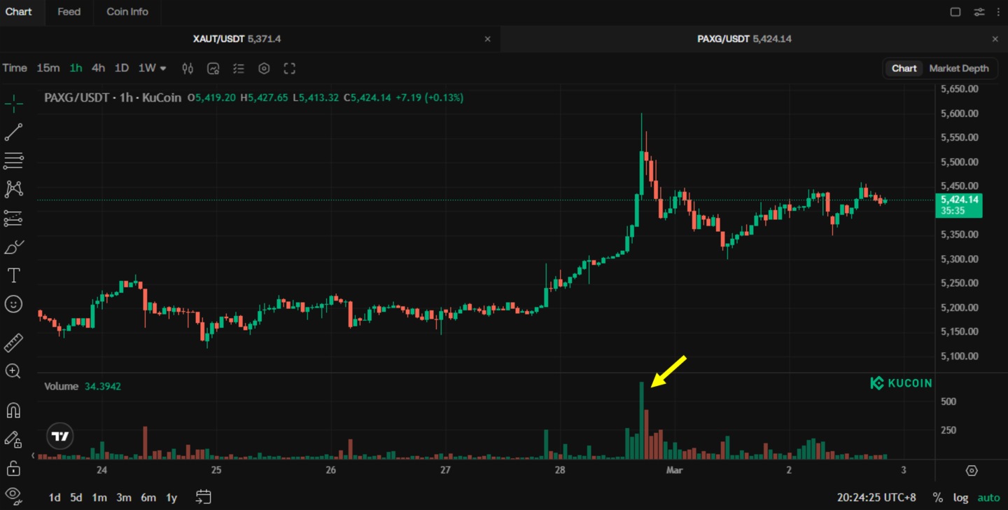 然而,在這個被刻意制造的“交易真空期”裡,全球資本並沒有坐以待斃。當CME(芝加哥商品交易所)的黃金和原油期貨盤面定格在周五收盤價、各類ETF的買賣按鈕被係統強制灰顯時,真正的暗流正在另一個永不休眠的網絡中洶湧澎湃。以XAUT(Tether Gold)和PAXG(PAX Gold)為代表的加密貨幣黃金代幣,在以太坊等區塊鏈網絡上迎來了交易高峰。