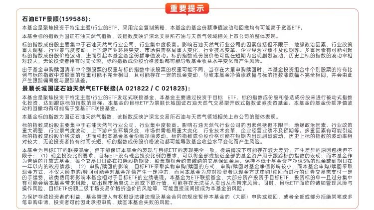 不一定,具體要看産品跟蹤的標的。比如石油ETF景順(159588)跟蹤的是國證石油天然氣指數,底層是油氣産業鏈上市公司,因此與油價有關聯,但不等於直接跟蹤油價。