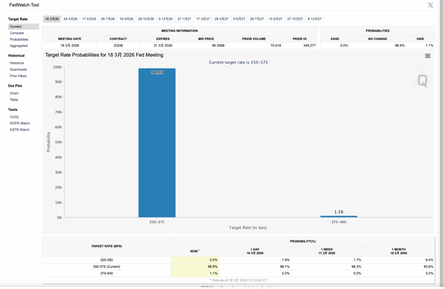 美國美聯儲FOMC利率決策(上限):前值3.75%、預測值3.75%(3月19日2:00)