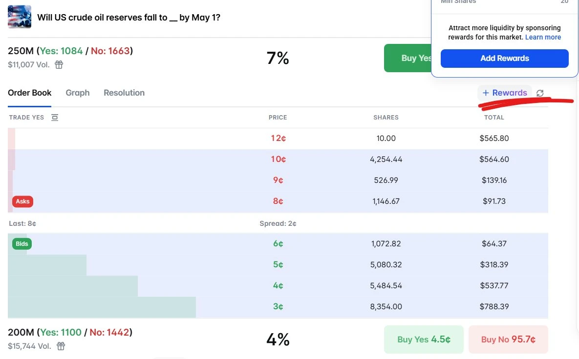 目前可在 polymarket.com/rewards 實時查看活躍獎勵押注事件和個人收益。激勵利差範圍在訂單簿界面以藍色高亮顯示,用戶也可以查看 Polymarket 官方文檔。