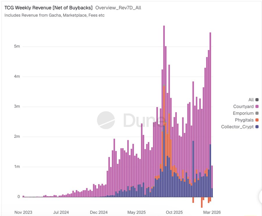 有點反直覺的是,@courtyard_io 和 @Collector_Crypt 的交易量和收入一直在漲。側面說明業務不依賴只重視交易的加密投機者。