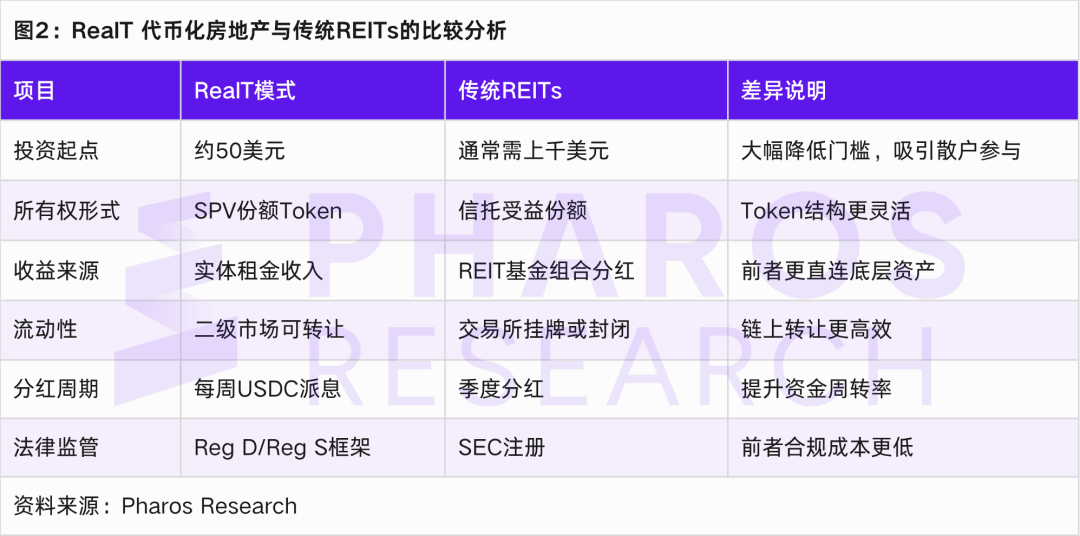 與傳統 REITs(房地産信託基金)相比,RealT 模式的創新在於: