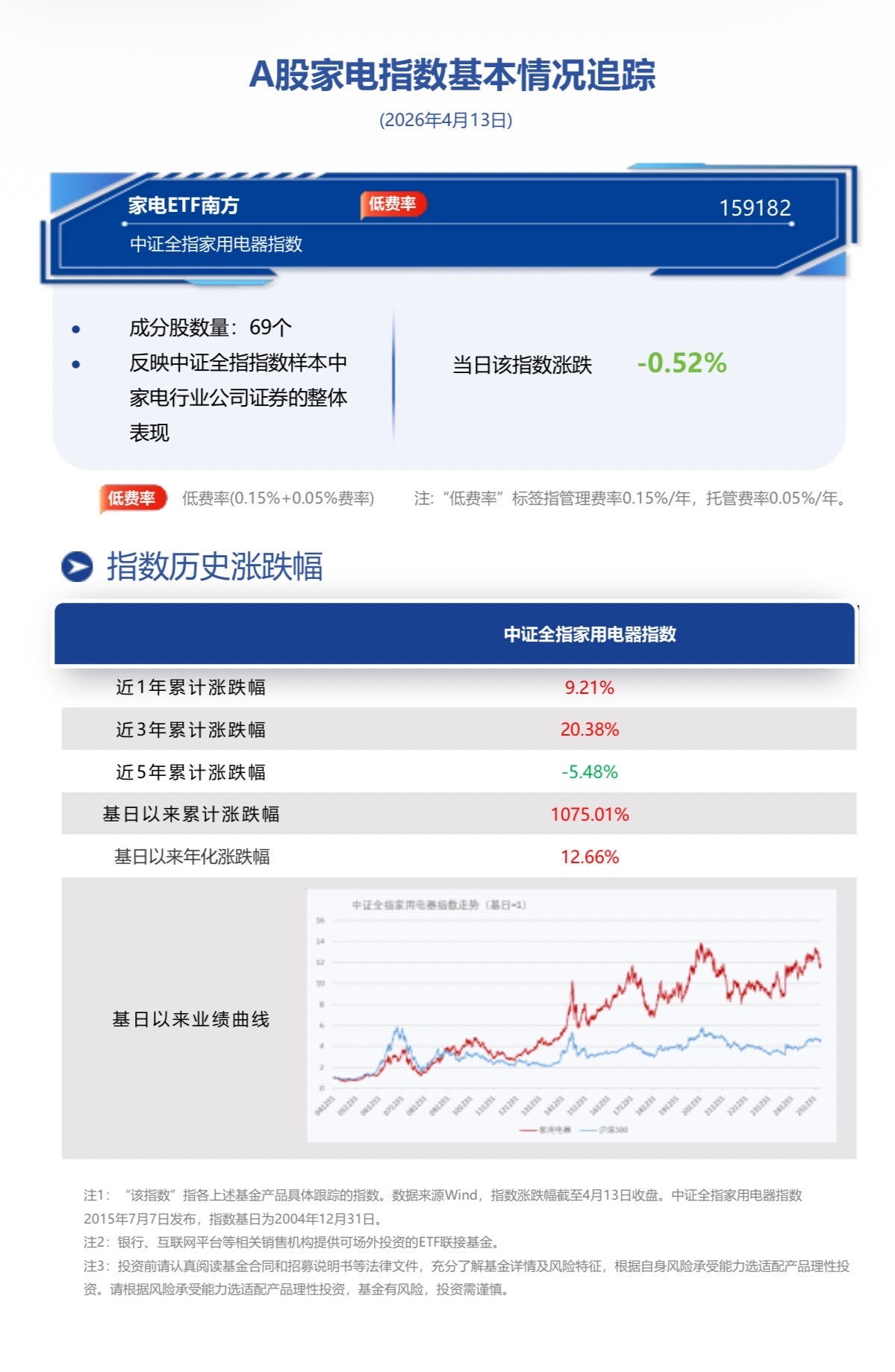 家電ETF南方(159182)重磅發售中!截至2026年4月13日收盤,家電ETF南方(159182)跟蹤標的指數中證全指家用電器指數(930697.CSI) 跌-0.52%。