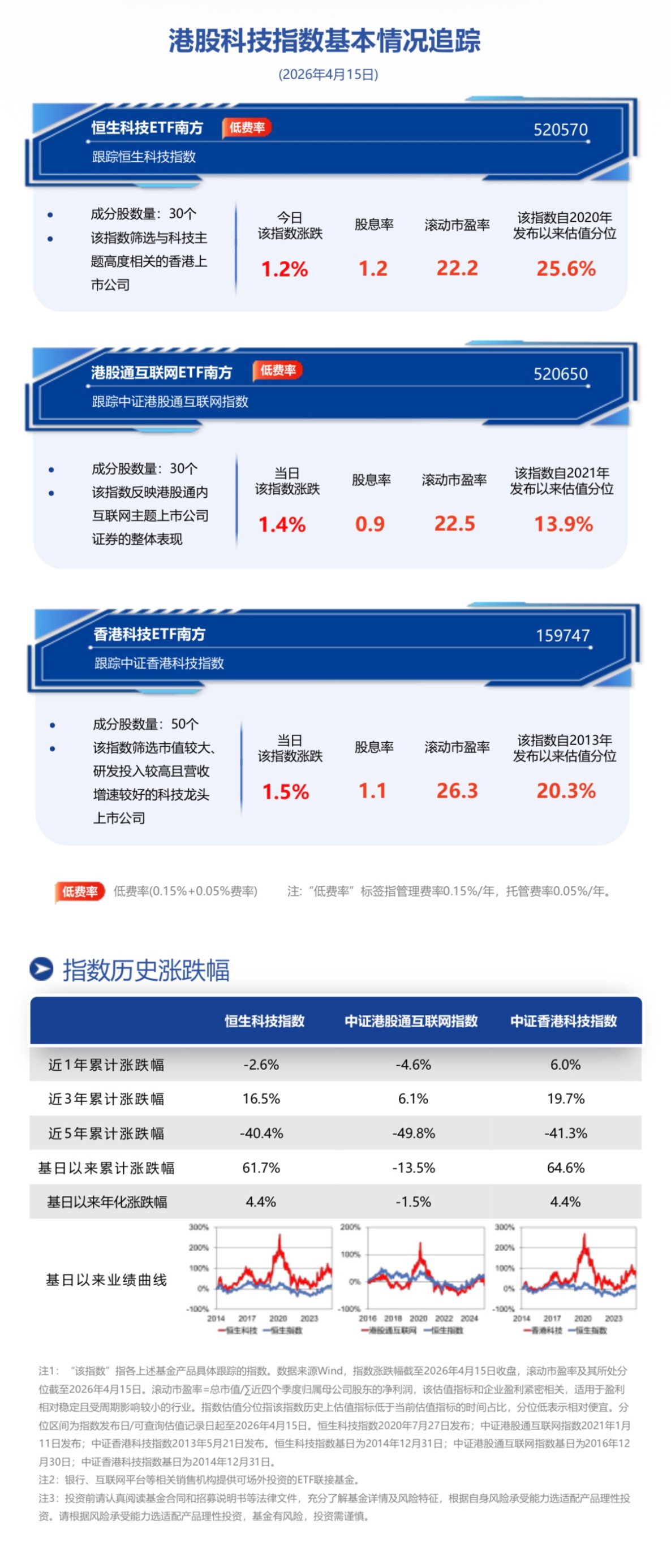 相關産品:恒生科技ETF南方(520570),場外聯接基金:A類:020988;C類:020989。港股通互聯網ETF南方(520650),場外聯接基金:A類:026554;C類:026555。香港科技ETF南方(159747)。
