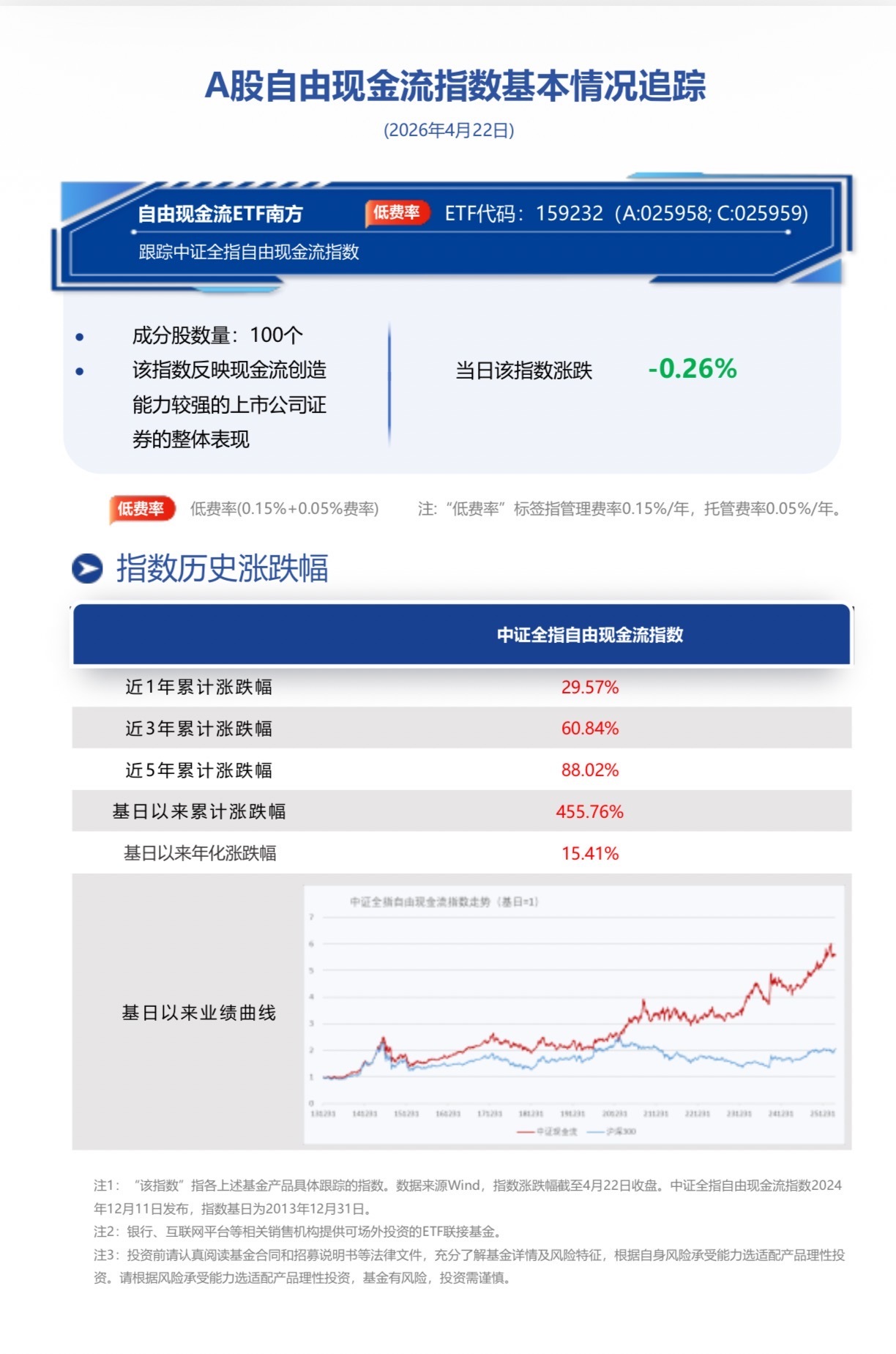 從長期視角看,現金流資産的價值在於「可持續」。穩定自由現金流不僅意味著企業具備更好的經營沉澱,也意味著其在復雜環境中更有條件維持分紅能力、資本開支和戰略彈性。自由現金流ETF南方(159232)圍繞自由現金流這一經典指標,聚焦A股高質量企業,幫助投資者把握穩健經營與長期回報之間的平衡,適合作為中長期配置的關注方向。
