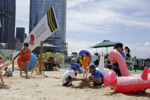 香港龍舟嘉年華是一場真正的夏日派對,將繼續帶來人工沙灘和「嬉水玩樂區」。除了新的嬉水遊戲,還提供休閒躺椅和水槍,本地公眾和遊客可在中環享受日光浴,歡度嬉水時光。(照片:美國商業資訊)
