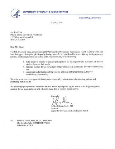 病人安全運動基金會創辦人Joe Kiani表示:「非常感謝FDA對我們工作的認可,也感謝已經簽署『開放資料承諾』的近100家開明企業。利用來自病人所使用的各種產品的資料,便可運用預測演算法和決策支援來避免病人傷害。」