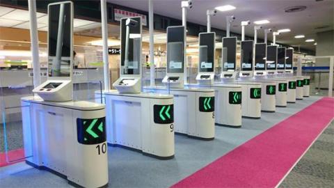 位於成田機場第一航廈(南翼)入境檢查區的松下自動臉部辨識門(照片:美國商業資訊)