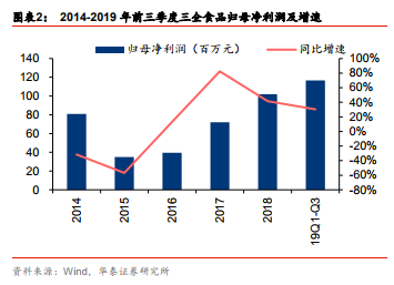 中信建投方面表示,一方面,豬瘟事件的負面影響已經逐漸恢複,停售産品逐步上架,另一方面,公司上半年持續推出新品,共推出20多個系列和70多個口味,一定程度貢獻了Q3營收的恢複增長。此外,公司自2018年來注重餐飲業的發展,目標實現雙輪驅動,自2019年初以來餐飲行業收入為公司營收作出的貢獻不斷增長,並推動Q3營收實現一定幅度的提升。