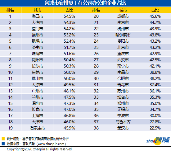 分城市來看,複工後各城市的工作地點也有所側重,選擇安排員工回到公司辦公的企業依然是主流,不出意料的是武漢占比最低,僅為22.5%,同樣作為疫情高發區的幾個浙江城市占比也較低。這一選項中,依然有48.5%的受訪者選擇了複工後在哪里辦公依然還不確定。