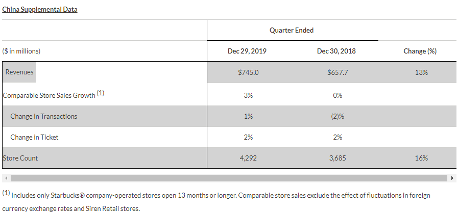 星巴克2020財年一季度中國市場補充數據