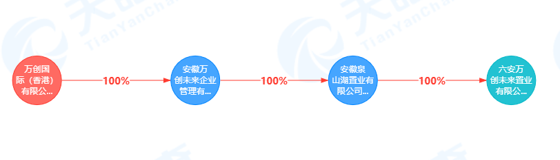 中國網財經查詢發現,六安萬創未來置業有限公司的股東為安徽泉山湖置業有限公司,持股比例100%,安徽泉山湖置業有限公司的股東為安徽萬創未來企業管理有限公司,持股比例100%;安徽萬創未來企業管理有限公司的股東為萬創國際(香港)有限公司,持股比例100%。