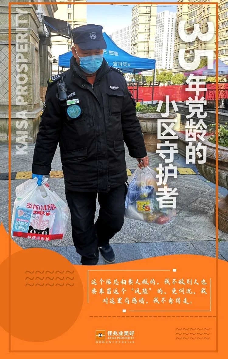 他用行動诠釋了責任的意義,只為更好的守護好“佳”園,感恩每一位“佳”人在這場戰“疫”付出的努力,用遠遠超出本職工作範圍的努力,在平凡的崗位,演繹著不平凡的角色。“治療一線是醫院,預防一線是物業”,沒錯,正是“佳”人的點滴付出,才讓這道抗疫的防線固若金湯。