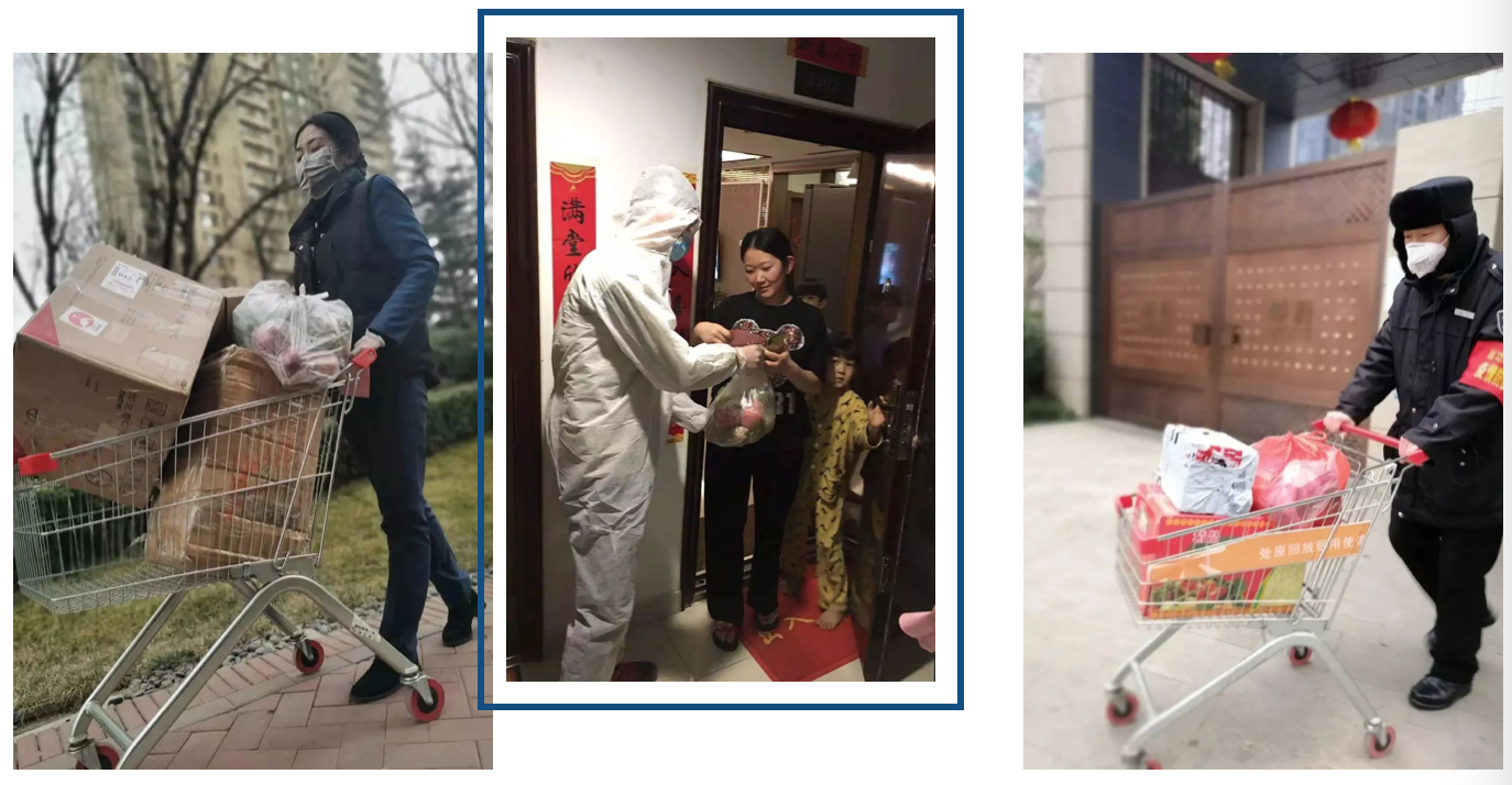 為讓業主足不出戶吃上新鮮、安全、平價的蔬果,項目積極開展“悅+守護,愛到家”活動,多方甄選優質供應商,項目分别成立志願配送服務隊,為業主提供高品質蔬菜配送服務,併幫助業主採買所需生活用品。
