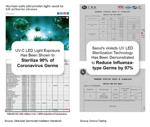 Violeds已被證明對流感病毒和各種細菌的滅菌率達97%
