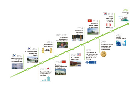 首爾半導體CEO李貞勳(音譯)于18年前創立了首爾偉傲世,與日本和美國公司開展戰略合作,開發UV LED技術。“本公司的Violeds技術在白斑病治療和利用動植物開展的生物研究領域取得了進展,希望能夠盡快幫助人類守護健康,並創造一個潔淨的世界”他表示,“我們希望通過將UV LED的壽命從現有的10,000小時提升至50,000小時(普通照明LED的水平)以上,大幅降低價格,在威脅人類健康的冠狀病毒肆虐下,幫助人們創造一個安全潔淨的環境”。