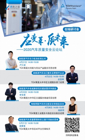 上海--(BUSINESS WIRE)--4月21日起,國際獨立第三方檢測、檢驗和認證機構德國萊茵TUV集團(以下簡稱“TUV萊茵”)將以“應變革,質未來”為主題,舉辦汽車質量系列在線研討會。TUV萊茵的專家們將從新能源汽車整車及零部件出口認證、動力電池、電磁兼容、功能安全和信息安全、質量管理體系等各個角度展開分享和探討,幫助車企把好質量安全關,助力行業健康可持續發展。