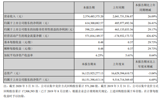 財報顯示,完美世界2020年第一季度營收為25.74億元,較上年同期增長26.09%,增長主要來自遊戲業務。2020年第一季度遊戲收入為21億元,較上年同期增長47.69%;第一季度歸屬于上市公司股東淨利潤6.14億元,較上年同期增26.41%,遊戲業務淨利潤較上年同期增長67.33%。