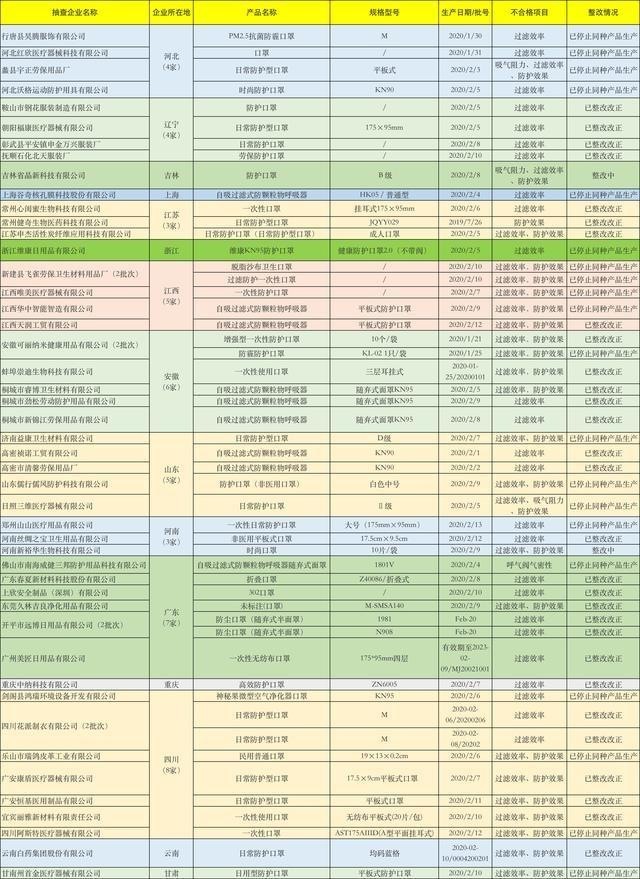 中國網財經5月11日訊(記者里豫 鄧玉蕊)近日,國家市場監管總局發布《非醫用口罩質量監督抽查不合格批次名單》,曝光51批次非醫用口罩不合格。安徽康萊藥業有限公司及安徽金貝冠藥業有限公司等6家安徽企業上榜。