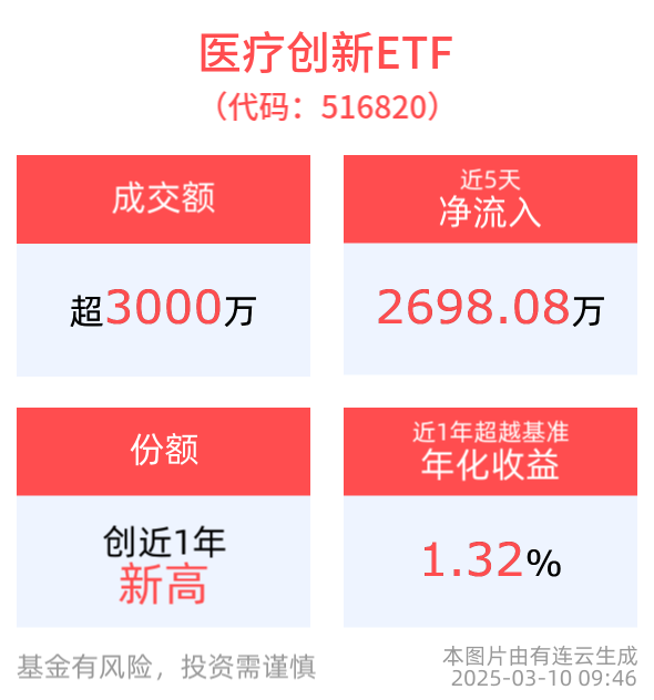 份額方面,醫療創新ETF最新份額達52.85億份,創近1年新高。