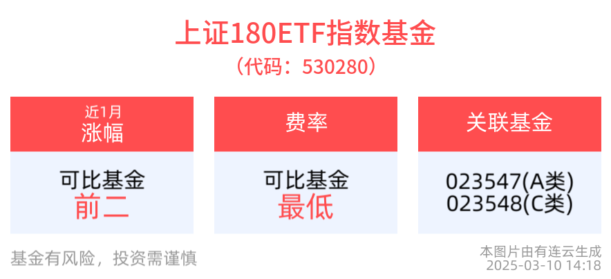 拉長時間看,截至2025年3月7日,上證180ETF指數基金近1周累計上漲1.67%,漲幅排名可比基金2/9。
