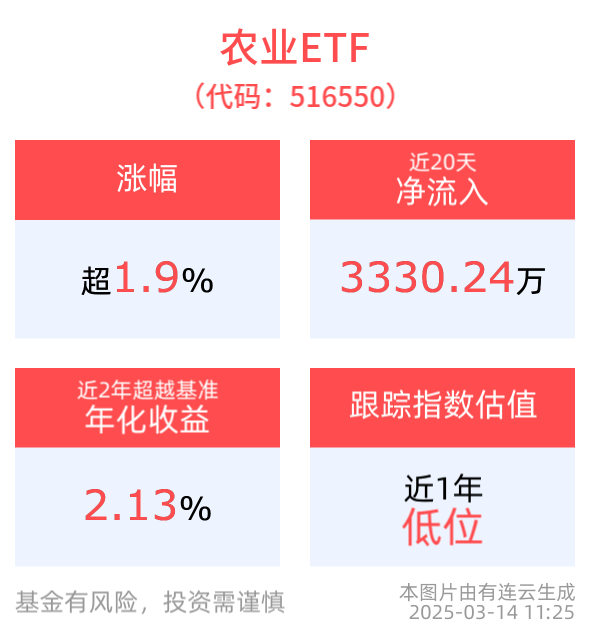資金流入方面,農業ETF最新資金流入流出持平。拉長時間看,近20個交易日内,合計「吸金」3330.24萬元。