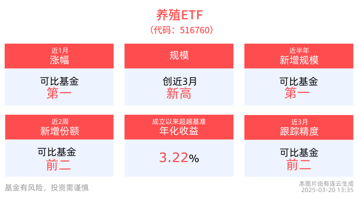 規模方面,養殖ETF最新規模達1.51億元,創近3月新高。